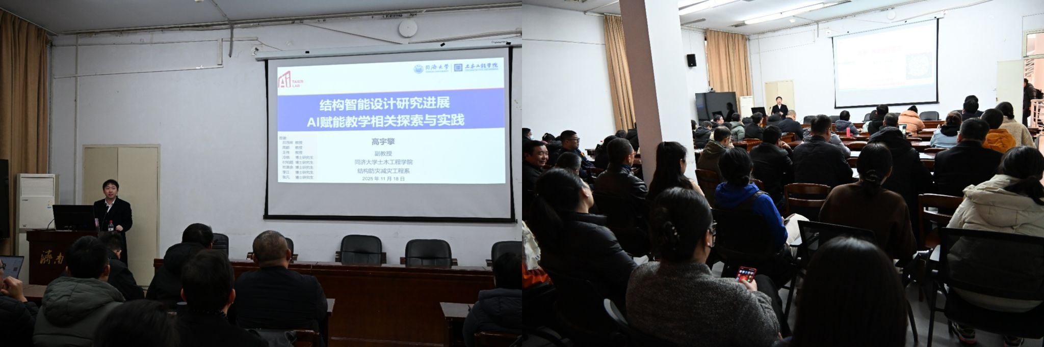 11月18日下午,我院“智赋教学”专题报告顺利举行。学院特邀同济大学土木工程学院高宇擎副教授莅临主讲,围绕人工智能技术在土木建筑领域的前沿研究动态与教学应用实践展开深度分享。学院全体教师参会聆听,院长谢群主持本次报告。