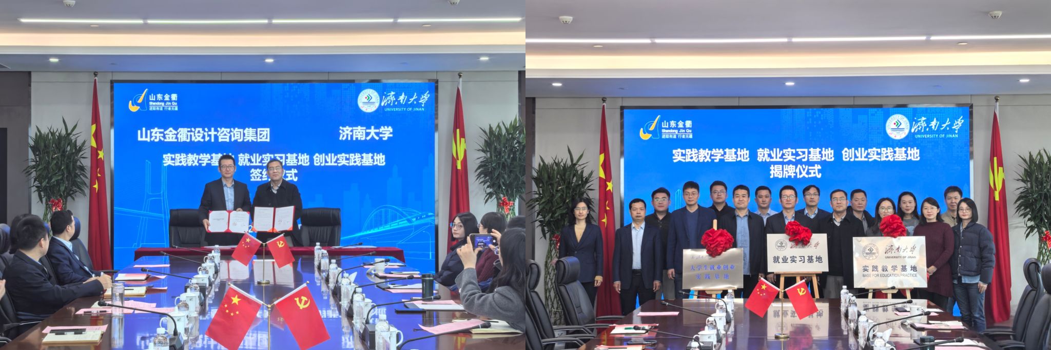 此次校企合作签约暨基地揭牌仪式的圆满举行,是济南大学与金衢集团响应产教融合政策、实现互利共赢的重要举措。未来,双方将以三大基地为载体,进一步深化合作内容、拓展合作领域,在人才培养、科研创新、就业创业等方面形成强大合力,既为高校人才培养提供实践支撑,又为企业发展注入人才活力,共同书写校企协同发展的新篇章。